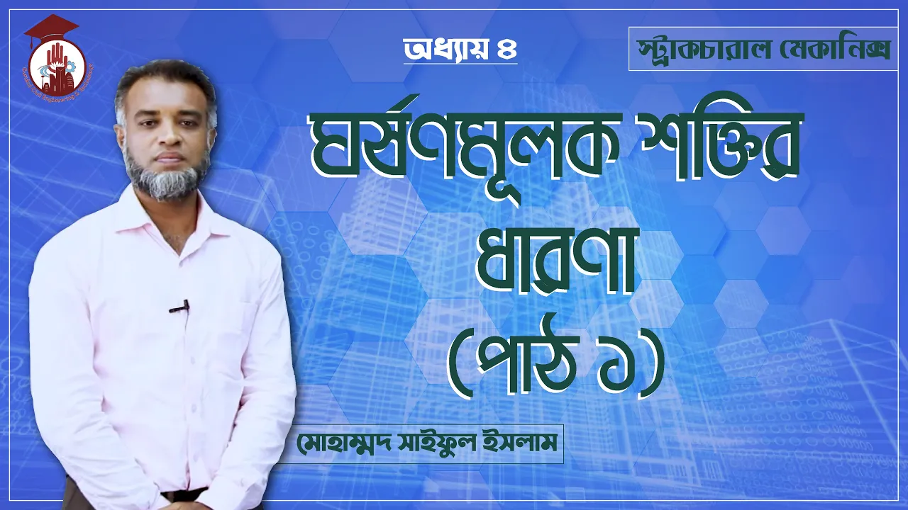 ঘর্ষণমূলক শক্তির ধারণা আজকের আলোচনার বিষয়। ঘর্ষণমূলক শক্তির ধারণা [The Concept of Frictional Forces] ক্লাসটি স্ট্রাকচারাল মেকানিক্স [Structural Mechanics] ৬৬৪৪১ [66441] কোর্সের ৪ অধ্যায়ের পাঠ। স্ট্রাকচারাল মেকানিক্স [Structure Mechanics] কোর্সটি বাংলাদেশ কারিগরি শিক্ষা বোর্ডের, ভোকেশনাল ডিসিপ্লিনের অংশ।