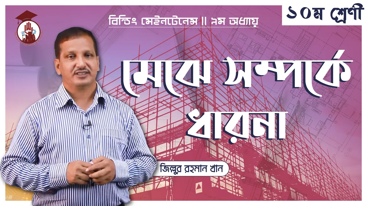 মেঝে সম্পর্কে ধারণা আজেকর ক্লাসের বিষয়। মেঝে সম্পর্কে ধারণা [Ideas about the floor] ক্লাসটি বাংলাদেশ কারিগরি শিক্ষা বোর্ডের, এসএসসি ভোকেশনাল ডিসিপ্লিনের, বিল্ডিং মেইনটেনেন্স -১ (৬৪২৩) কোর্সের ৯ম অধ্যায়ের পাঠ। বিল্ডিং মেইনটেনেন্স [Building Maintenance] কোর্সটি বাংলাদেশ কারিগরি শিক্ষা বোর্ডের, ভাকেশনাল ডিসিপ্লিনের অংশ। এই বিষয়টি ১০ম শ্রেণীতে পড়াতে হয়।